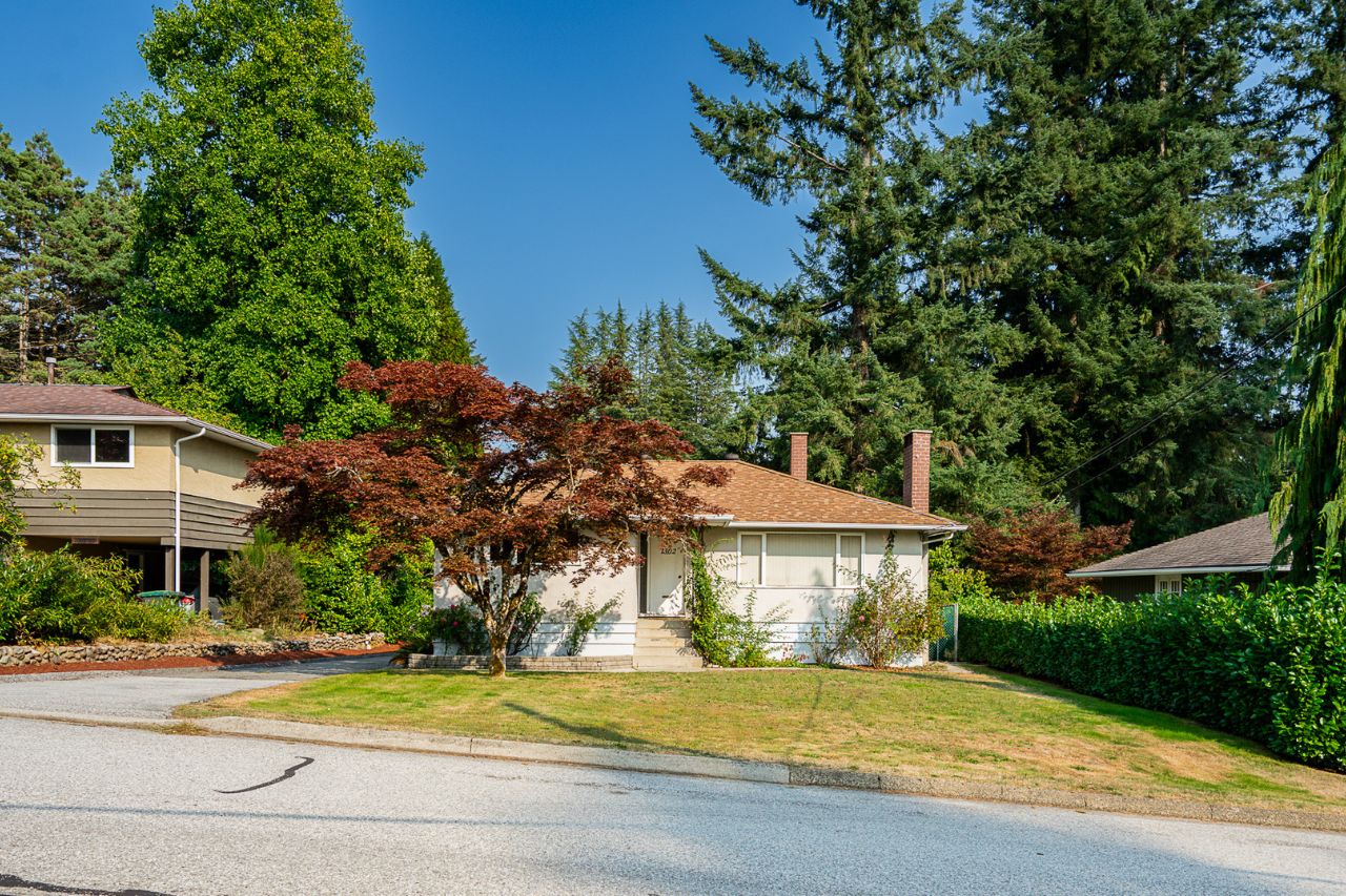Offered for the first time in over 50 years and priced below tax assessed value, this solid mid-century home in Blueridge presents a rare opportunity for families seeking a quiet, green neighborhood close to top schools, Ron Andrews Community Centre, and endless hiking and biking trails. Featuring a two-bedroom mortgage helper and a large detached two-bay garage—ideal for a possible laneway home, workshop, or studio—the property offers both affordability and potential. Surrounded by mature trees and shrubs, the private backyard invites relaxation, while the location provides easy access to Parkgate Village and downtown Vancouver via the Iron Workers Bridge.